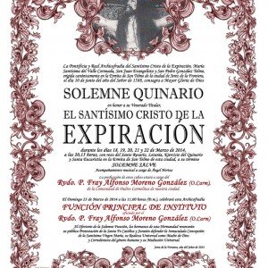 El Domingo, día 23 de Marzo a las 11,00 horas, se celebrará (D.m) la FUNCION PRINCIPAL DE INSTITUTO, presidida por el Rvdo. P. Fray Alfonso Moreno González (O.Carm)
